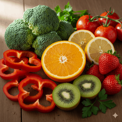 Vitamina C: Potente antioxidante que refuerza las defensas y la piel.